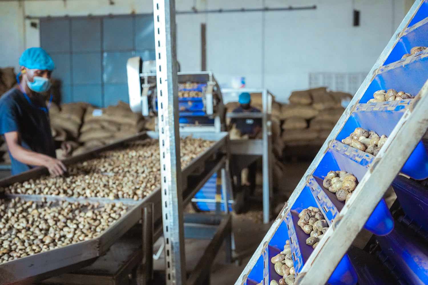 Hier befindet sich die von Grund auf neu errichtete, halbautomatisierte und moderne Cashew-Verarbeitungsfabrik, von der wir unsere Cashews beziehen. Sie beherbergt innovative Technik und neueste Verfahren, die eine sichere und geschützte Umgebung für die Arbeiter gewährleisten.